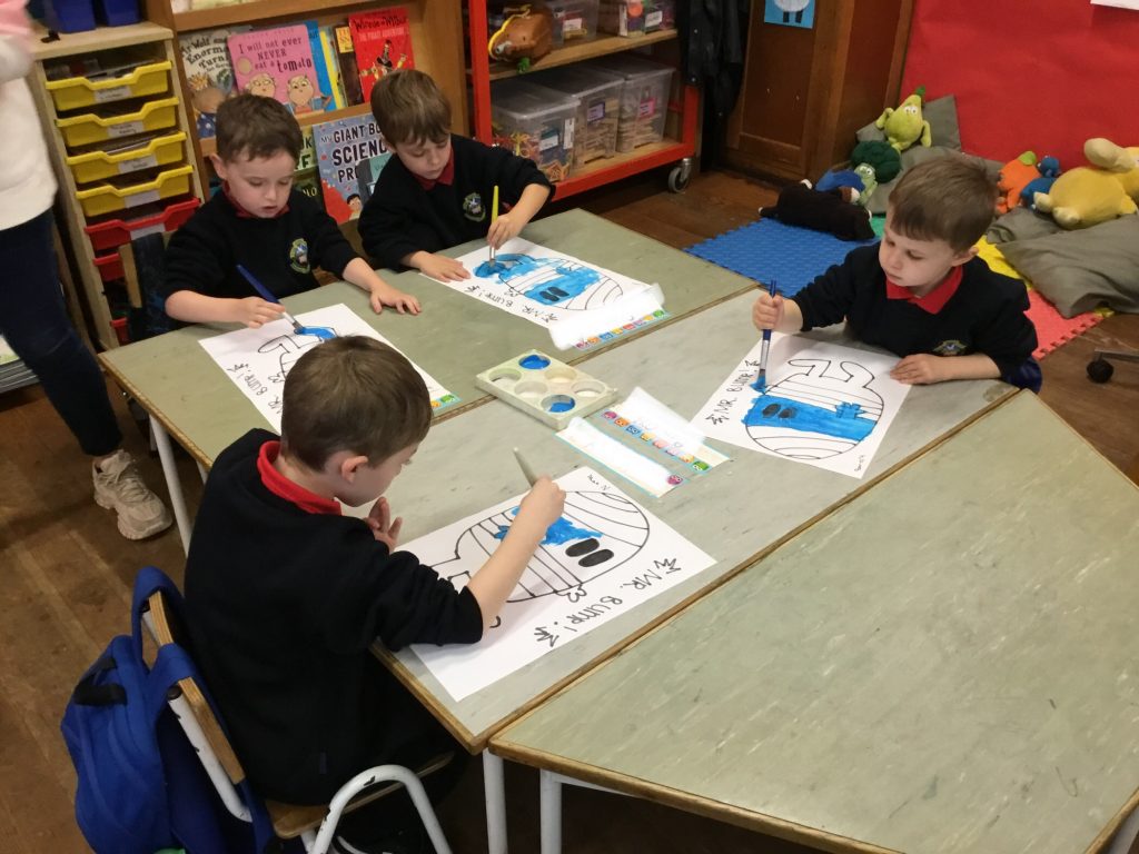 Last week we learnt our first letter; the letter ‘s’. We listed lots of words that start with ‘s’ like snake, snow, Santa and snowmen. We then created our name snowmen to integrate Art with our English lessons.