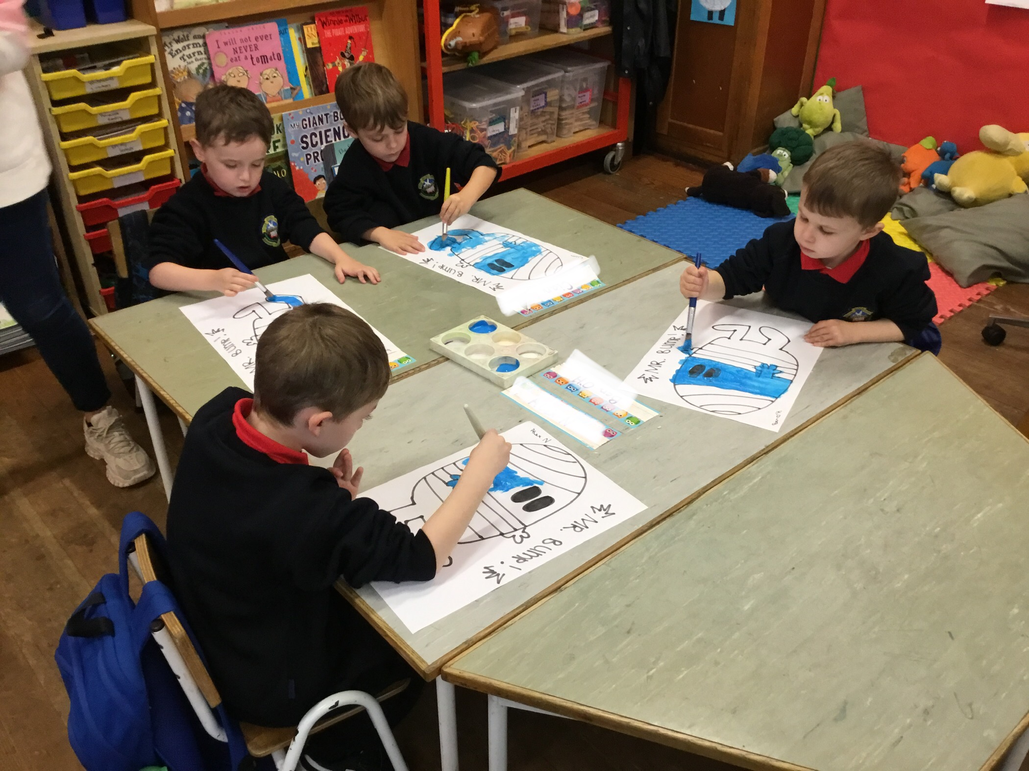 We had so much fun adding different fabrics and items to Mrs Honey’s new hat. We were glad to see her bubblegum and fish bones go!