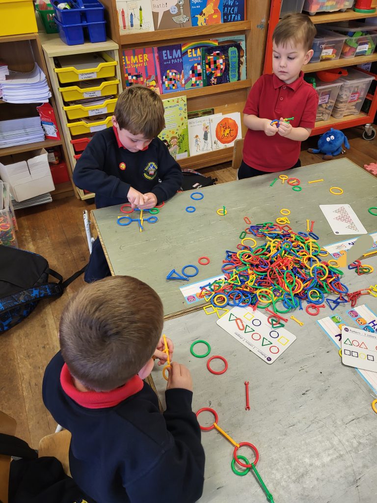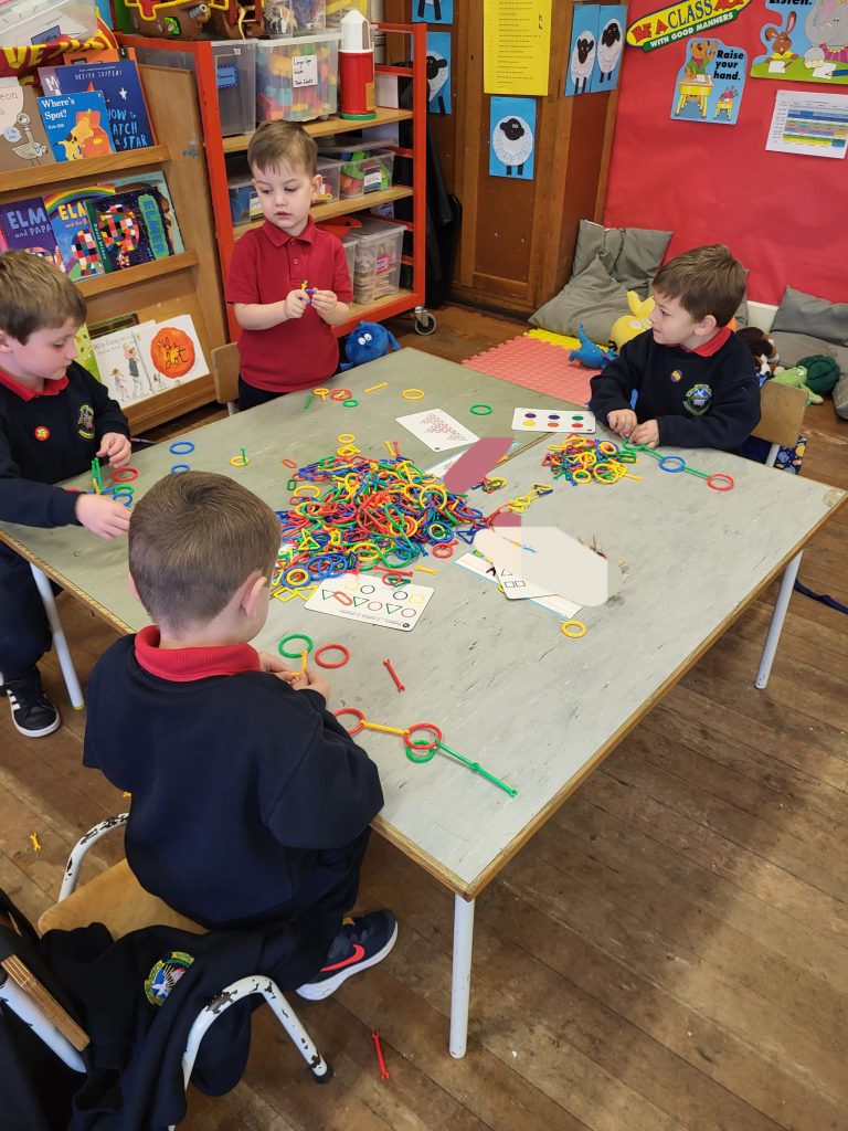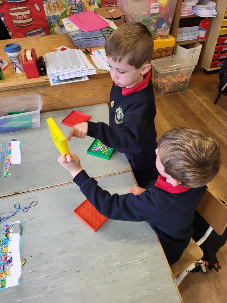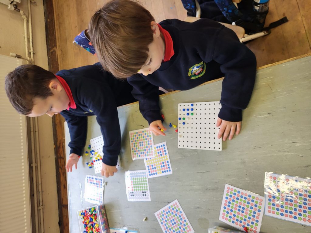We had fun threading beads, cutting, creating patterns with pegs and practicing our grip with tweezers and pom poms!