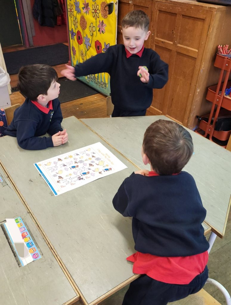 We have started to learn about telling the time in Maths. We played ‘hip, hop, around the clock,’ and the boys participated enthusiastically! Then they worked hard in class to show their new Maths skills.