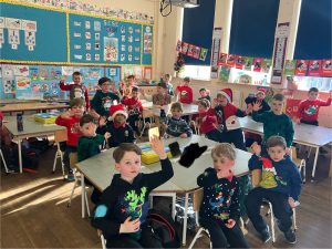 Great fun in school today with our Christmas jumper day and a very special visitor from The North Pole!