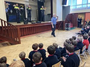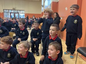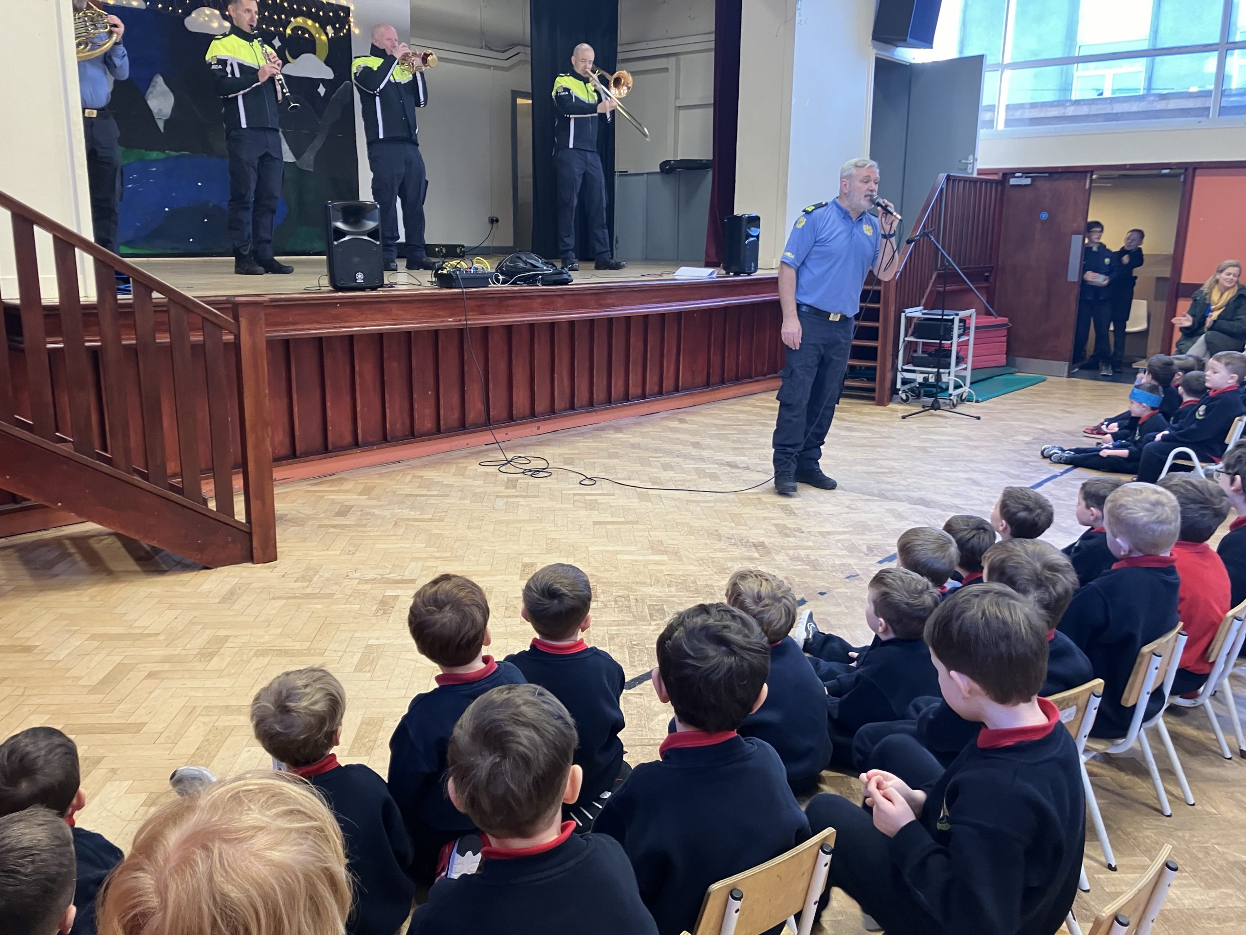 We were so lucky to have the Garda Band perform for us today and they brought a surprise visitor with them also! We sang along with them to lots of fun Christmas songs. A great time was had!