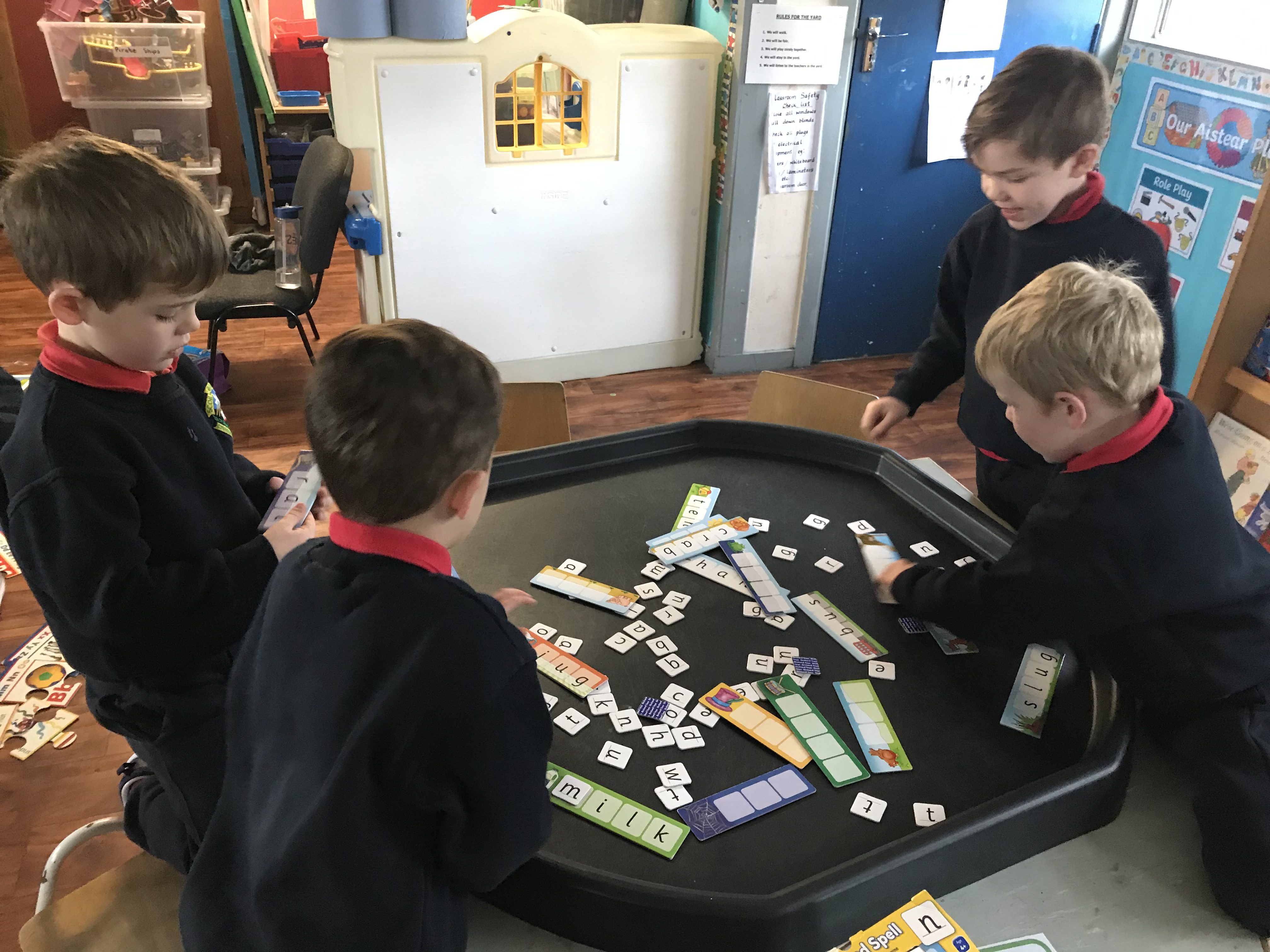 We had fun today doing Literacy stations. The boys moved around the room doing various games that will help with their literacy skills. We had a Tricky Word matching game, jigsaws and writing skills on our small whiteboards. We also revised the sounds s,a,t,i,p and n in small groups with teacher. Please continue to revise these at home. The boys should know the name of each letter, the sound it makes and two words that start with each letter. The boys also used the website ‘www.starfall.com’ to learn about letters and the sound they make.